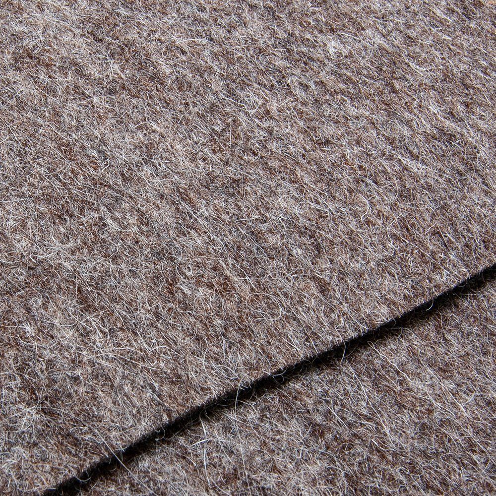 Das verfahren aus der Rohwolle von Schafen Filz herzustellen ist bereits tausende Jahre alt und wurde zum ersten mal in der Bronzezeit belegt. Bei der Herstellung von Wollfilz wird die gereinigte und gekämmte Wolle durch mechanisches Walken mit einander nahezu untrennbar verbunden. Das dies so gut gelingt liegt an der Struktur der Schafhaare welche sich wie kleine Widerhaken miteinander verhaken. Für unsere Produkte haben wir uns für einen Filz entschieden welcher aus ungefärbter, überwiegend dunkler und brauner Rohwolle besteht. Hierdurch entsteht ein interessantes Zusammenspiel mit den von uns verwendeten Natursteinen und ihren teilweise lebhaften Farben. Wollfilz ist ein langlebiges und widerstandsfähiges Material welches auf vielseitige weise genutzt werden kann und durch seine guten Eigenschaften, wie Feuerfestigkeit, überzeugen kann.